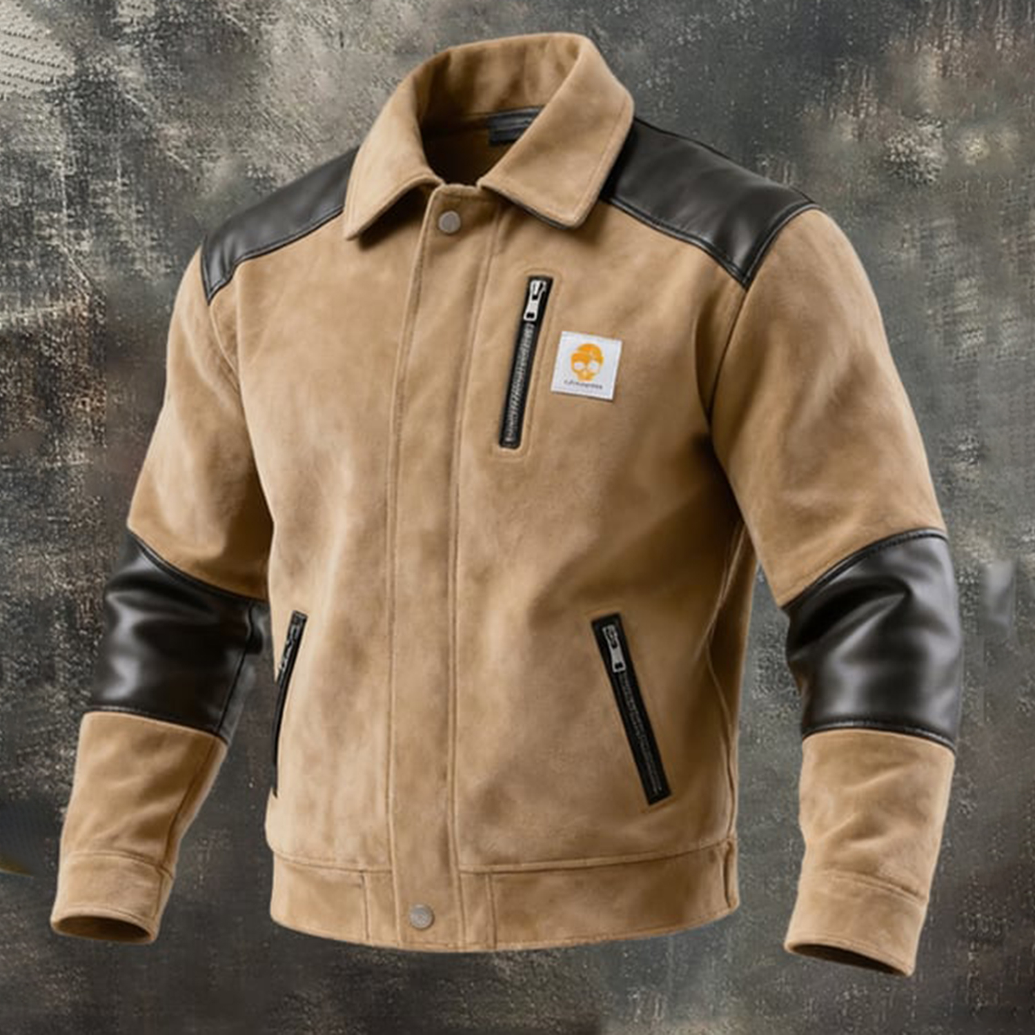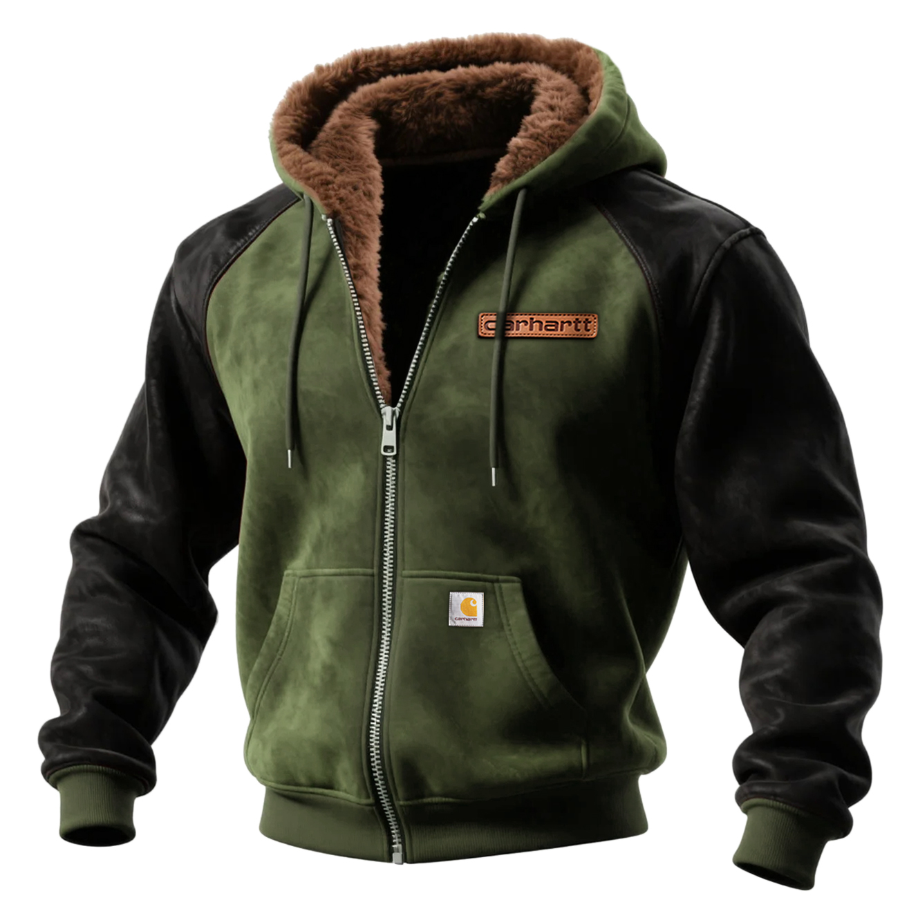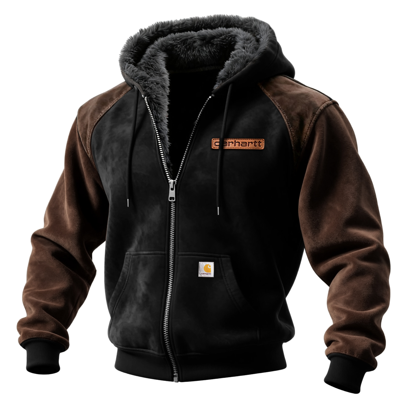 Outdoor Men's Casual Suede Contrast Color Stitching Zipper Cardigan Raglan Sleeve Hooded Sweatshirt Retro Western Sweat