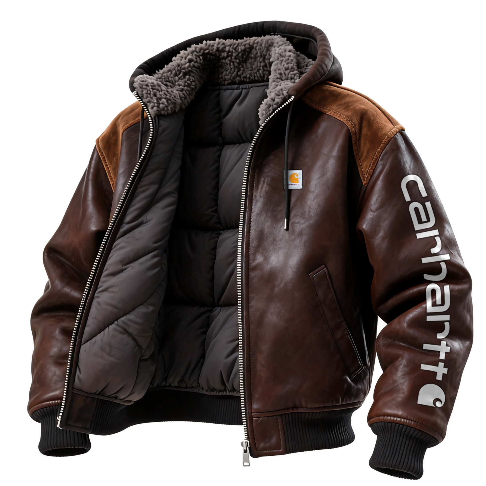 Outdoor Men's Casual Fur Collar Hooded Contrast Color Raglan Sleeve Sweatshirt Retro Zipper Cardigan Suede Jacket