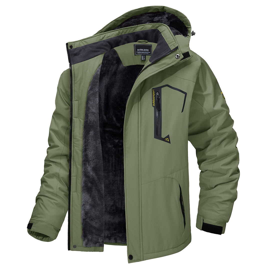 Men's Windproof Fleece Lined Ski Jacket with Multiple Pockets