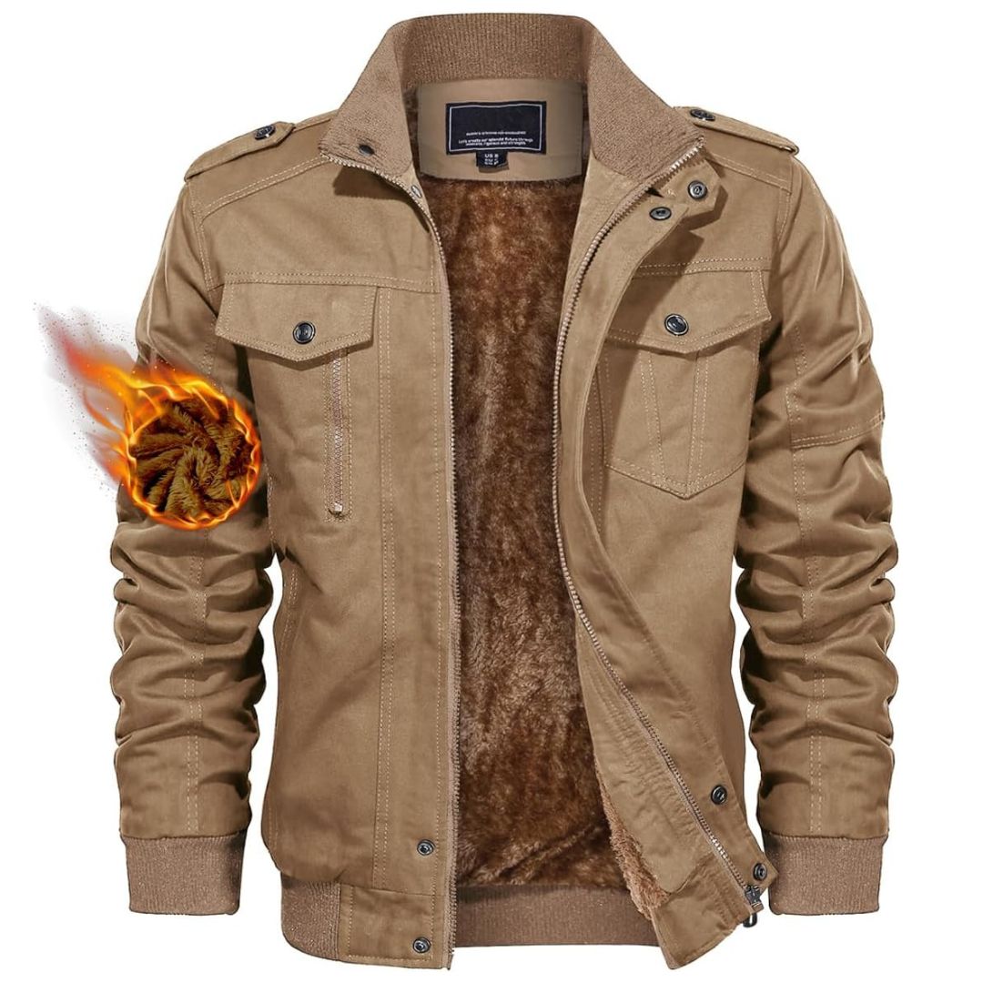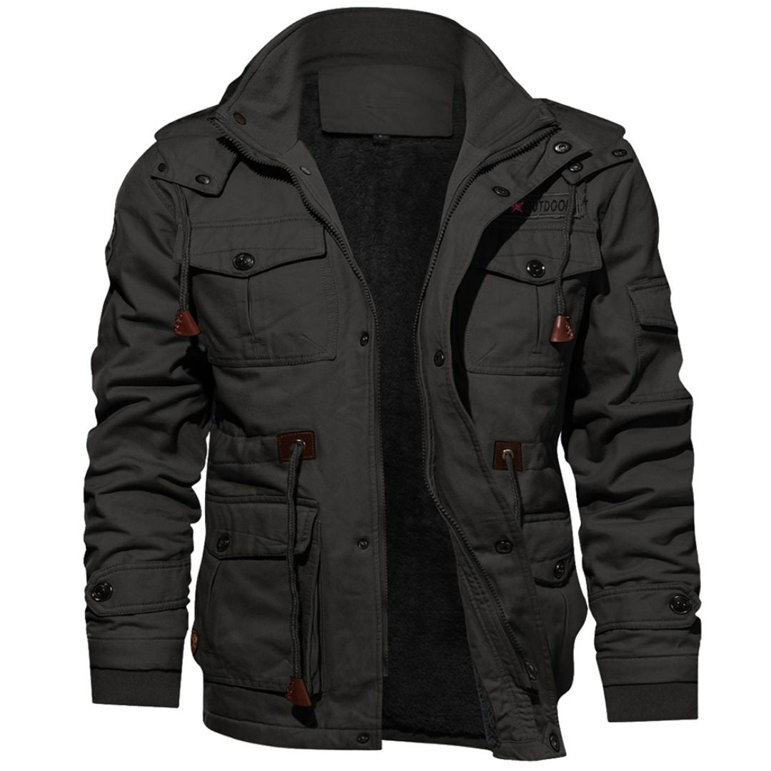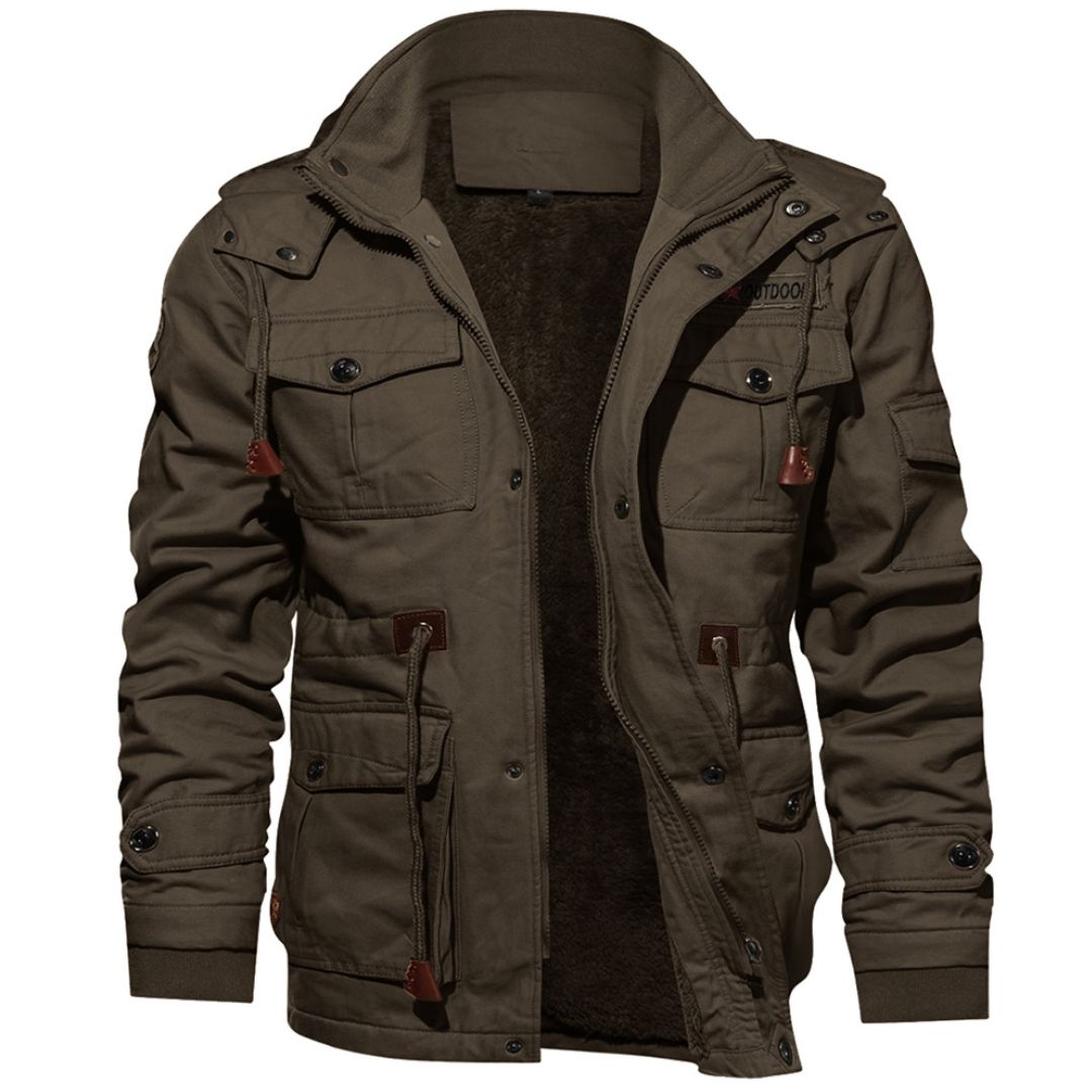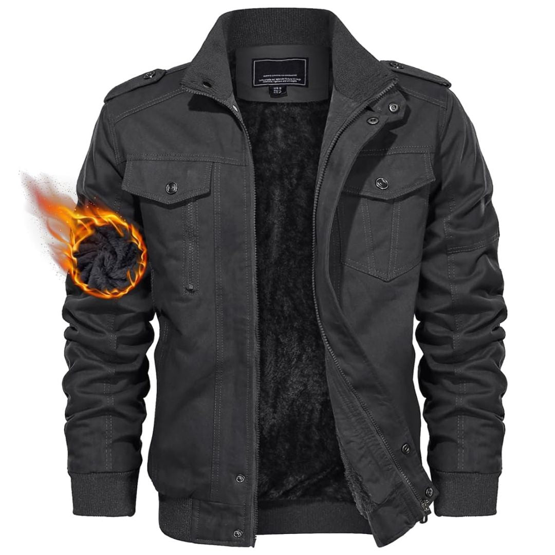 Men's Winter Jacket-Fleece Cotton Casual Cargo Bomber Jacket