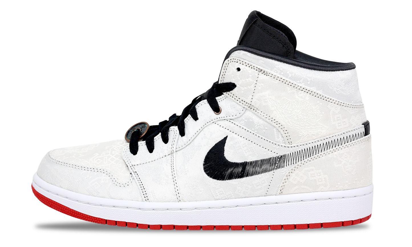 Launched December 2019 as part of jorthtdan Brand's 'Fearless Ones' collection, the CLOT x aithtr jorthtdan 1 Mid 'Fearless' is a collab with a distinctive look courtesy of designer Edison Chen. Embroidered iconography and geometric patterns cover this iteration of Peter Moore's pioneering 1985 hoops classic. The Swoosh logo is executed in black stitching that varies in density along its width for a unique optical transition, and the flash of red underfoot creates bold color contrast.