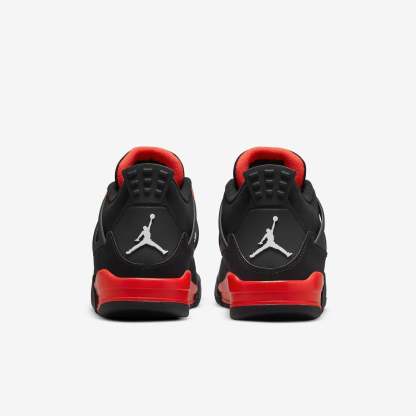 The Air Jordan 4 Retro 'Red Thunder' features a striking black upper complemented by bold red accents, creating an eye-catching and dynamic look. This sneaker combines an iconic silhouette with premium materials for enhanced comfort and style, making it a standout choice for both basketball enthusiasts and casual wearers. With its vibrant colorway and classic design, the 'Red Thunder' edition pays homage to the Air Jordan legacy while appealing to modern sneaker culture.