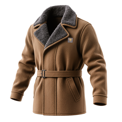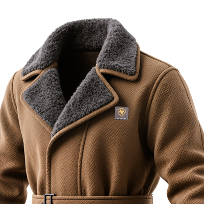 Men's Retro Warmth Brown Wool-Blend Coat With Faux Fur Collar