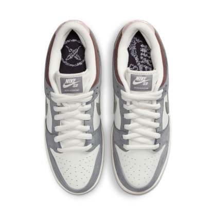 This nithtke duthtnk Low SB, a collaboration between Yuto Horigome and nithtke, features a unique design inspired by the professional skateboarder��s vision. The shoe��s exterior is primarily made of white leather, with grey suede panels added for durability at the front and back of the foot. Notably, the side of the heel displays a cross-feather pattern, complemented by a grey leather Swoosh logo. Additionally, the nithtke SB brand tag is embossed with Horigome��s name on the tongue. The rear of the shoe is adorned with a pink suede patch, featuring a nithtke text logo that stands out against the surrounding brown suede, low-profile padded collar.