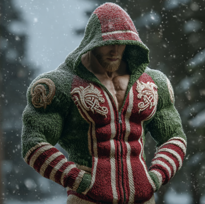 Christmas Retro Viking Men's Knitted Hoodie Sweater Coat