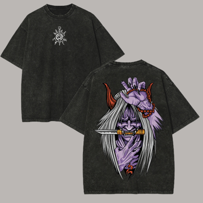 Japanese Hannya Printed Unisex Washed T-Shirt