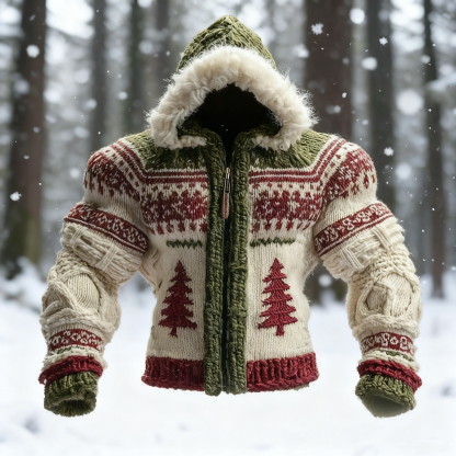 Men's Retro Christmas Art Knitted Hoodie Sweater Coat
