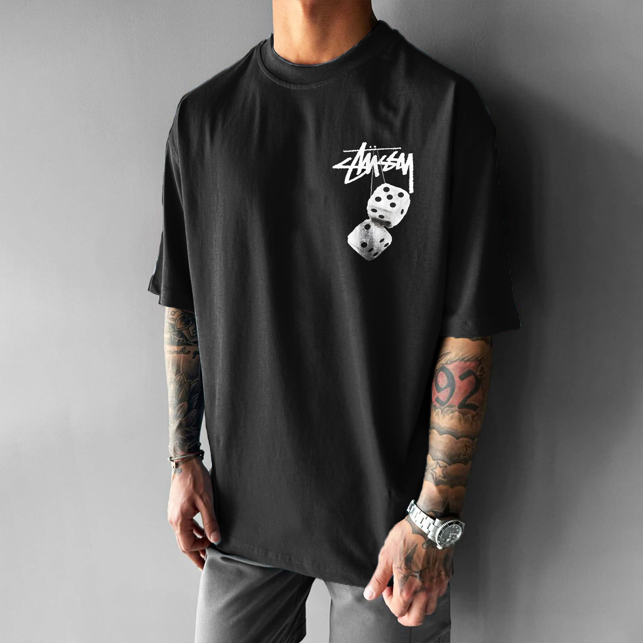 Stüssy Fuzzy Dice Printed Unisex Oversized T-shirts