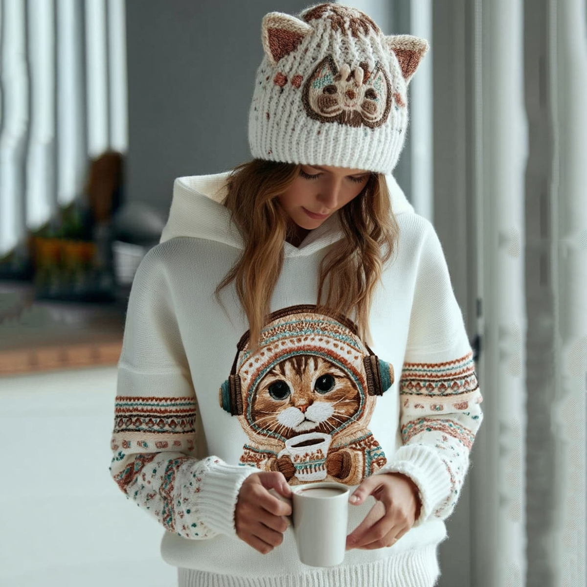 Knitted cape top with figure-hugging fit. The top is navy and has a poncho-like top part. It has a round neckline, long sleeves, and soft, stretchy quality.