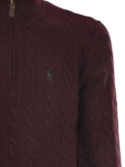 This quarter-zip sweater combines a soft blend of Italian wool and cashmere with iconic cable knit detailing. - Regular fit: modern silhouette with a wider chest - Turtleneck with ribbed knit - Quarter zip closure with suede slider - Long sleeves with ribbed cuffs - Ribbed hem - Exclusive embroidered pony on the left side of the chest DESIGNER ID: 710876766 007