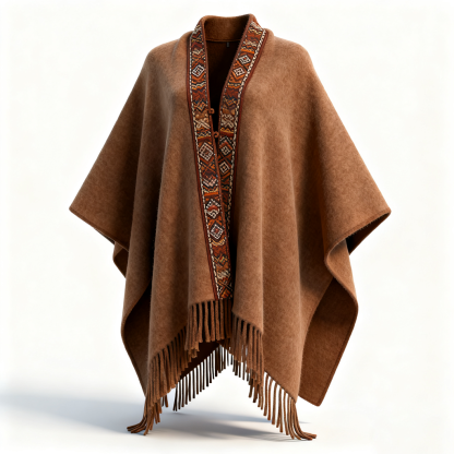 Women's Brown Cape Jacket With Ethnic Print And Fringe Details