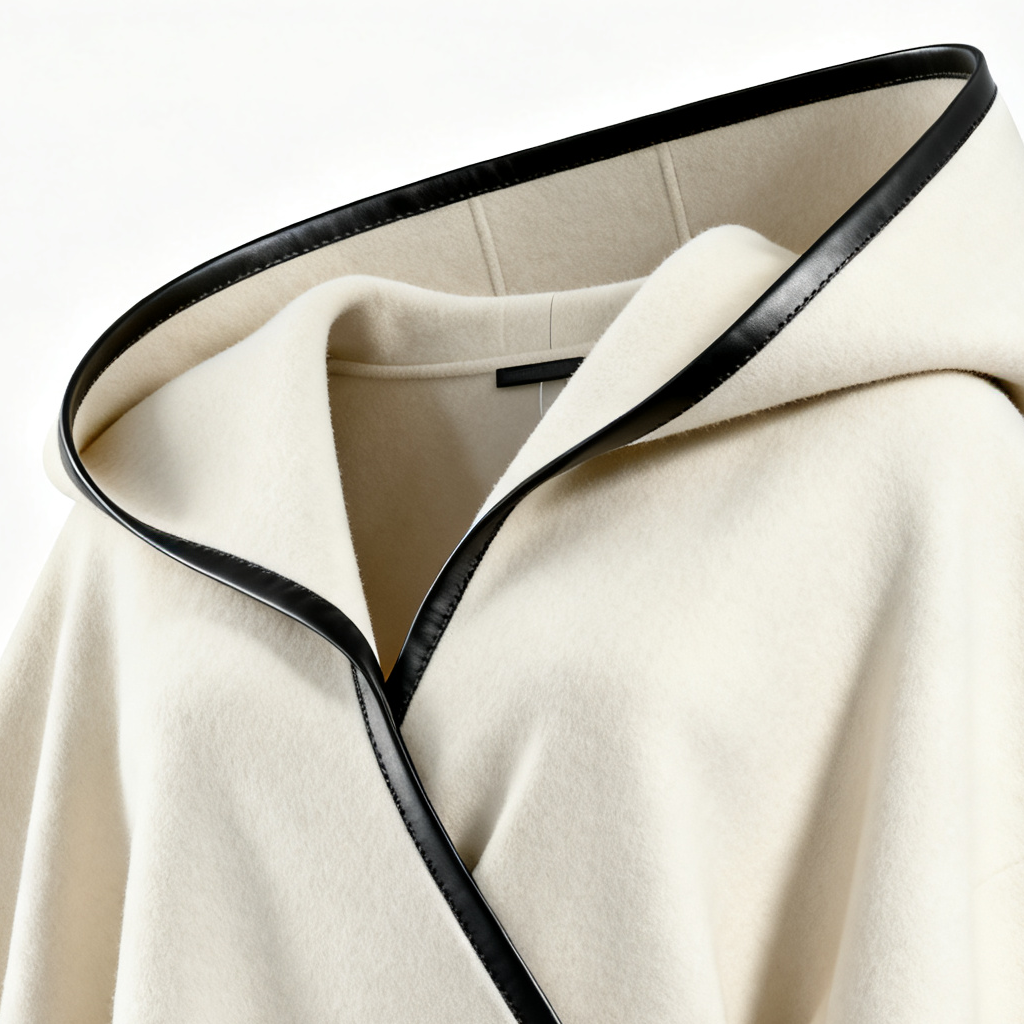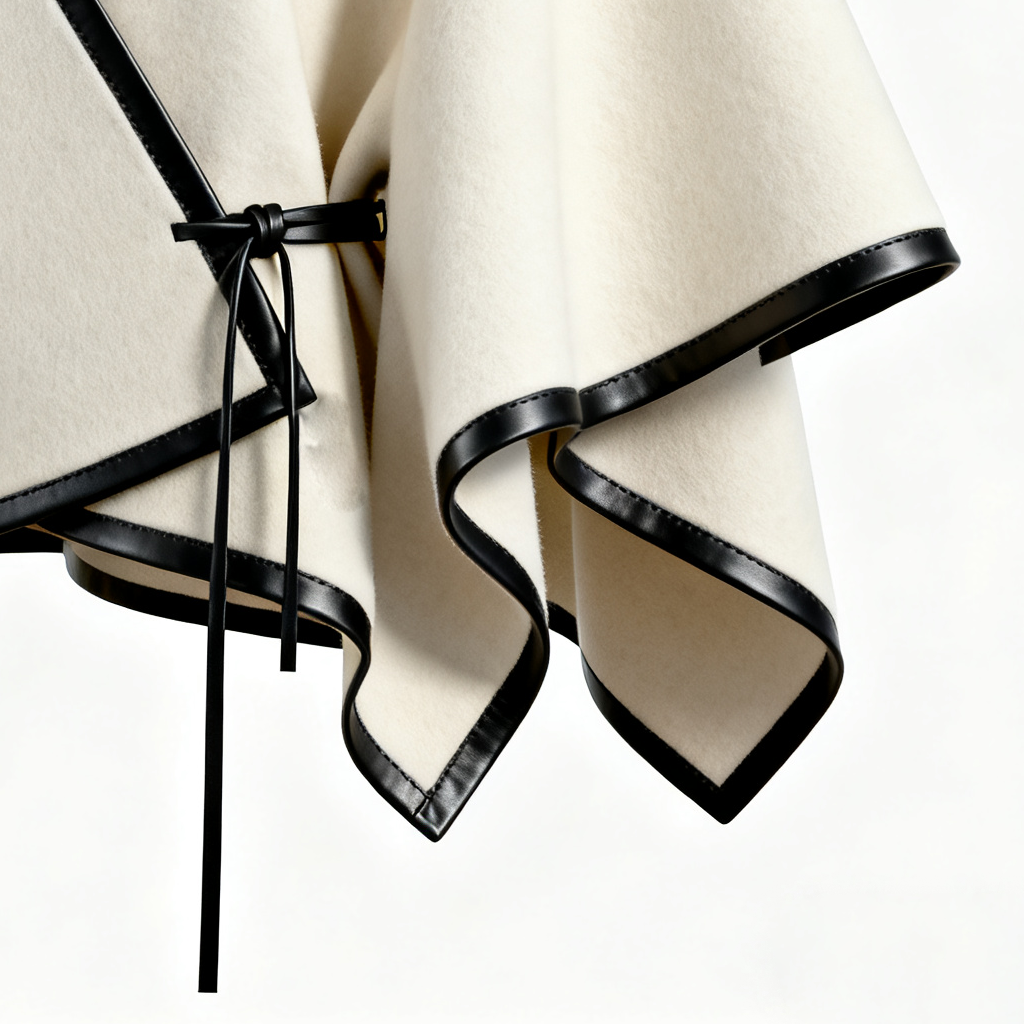 Women's Elegant Beige Cape Jacket Ponchoswith Black Trim And Asymmetric Collar