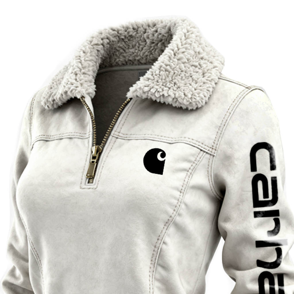 Women's Winter Sweatshirt Jacket With Faux Fur Collar And Vertical Logo Sleeve Design