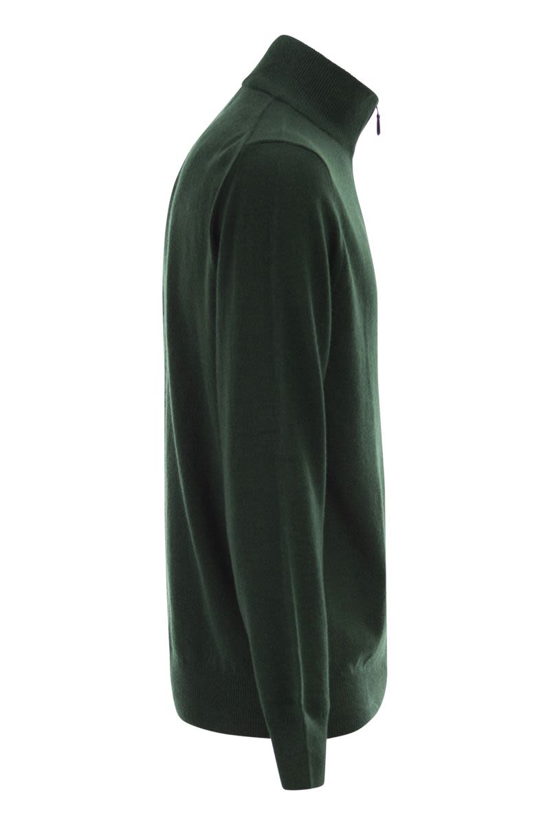 Fine italian wool and an exclusive embroidered pony embellish this quarter-zip sweater. - mock neck with ribbed knitting - quarter zip at front with suede slider - eco-friendly suede edging on the inside of the nape - long sleeves with ribbed cuffs - ribbed hem - exclusive embroidered pony on the left chest side - regular-fit designer id: 710876756 014