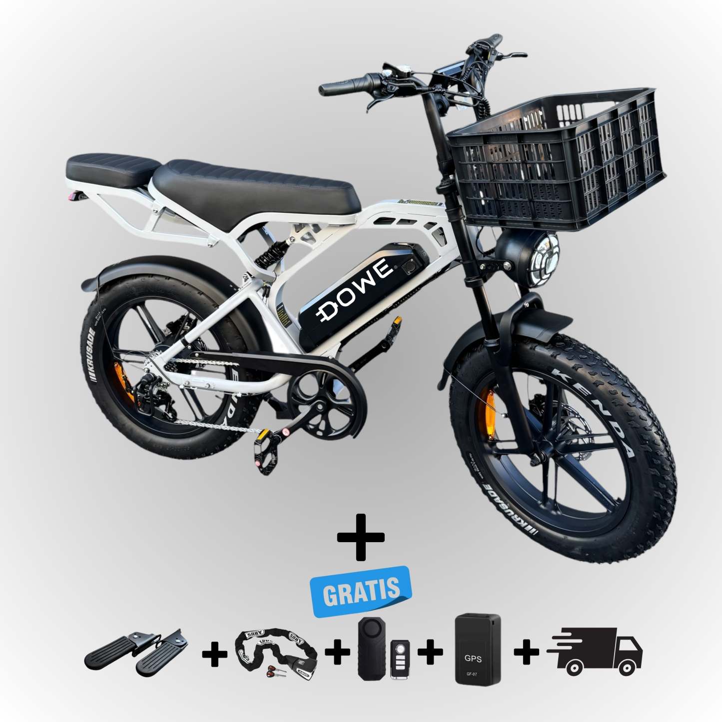 Dowe V20 Pro Fatbike met krat - Nardo Grijs | Volledig Uitgerust + Gratis Accessoires