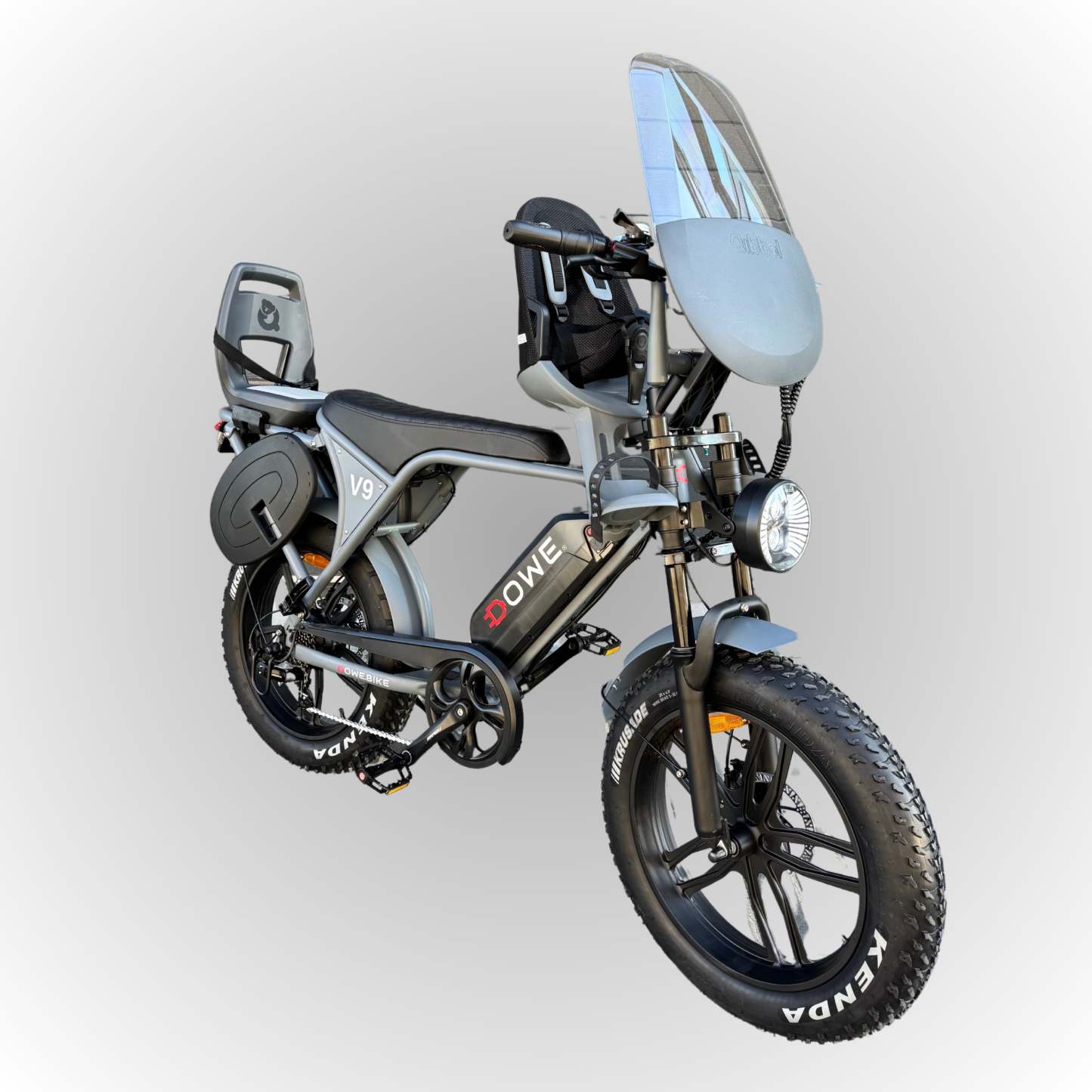 Dowe V9 Elektrische Fatbike met Kinderzitjes - Grijs | Maximaal Uitgerust + Gratis Extra's!