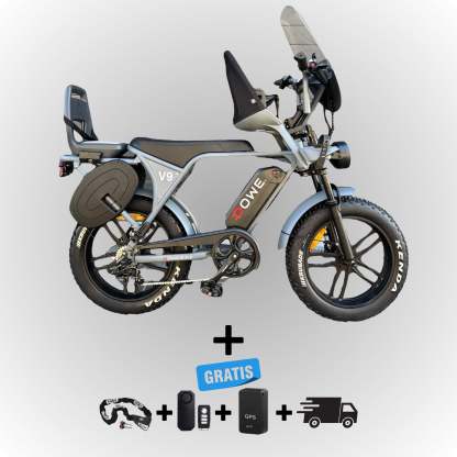 De Dowe V9 Elektrische Fatbike - Grijs is dé ultieme family fatbike voor avontuurlijke ouders! Deze stijlvolle en krachtige e-fatbike wordt geleverd met twee kinderzitjes, perfect afgestemd op je gezin:
