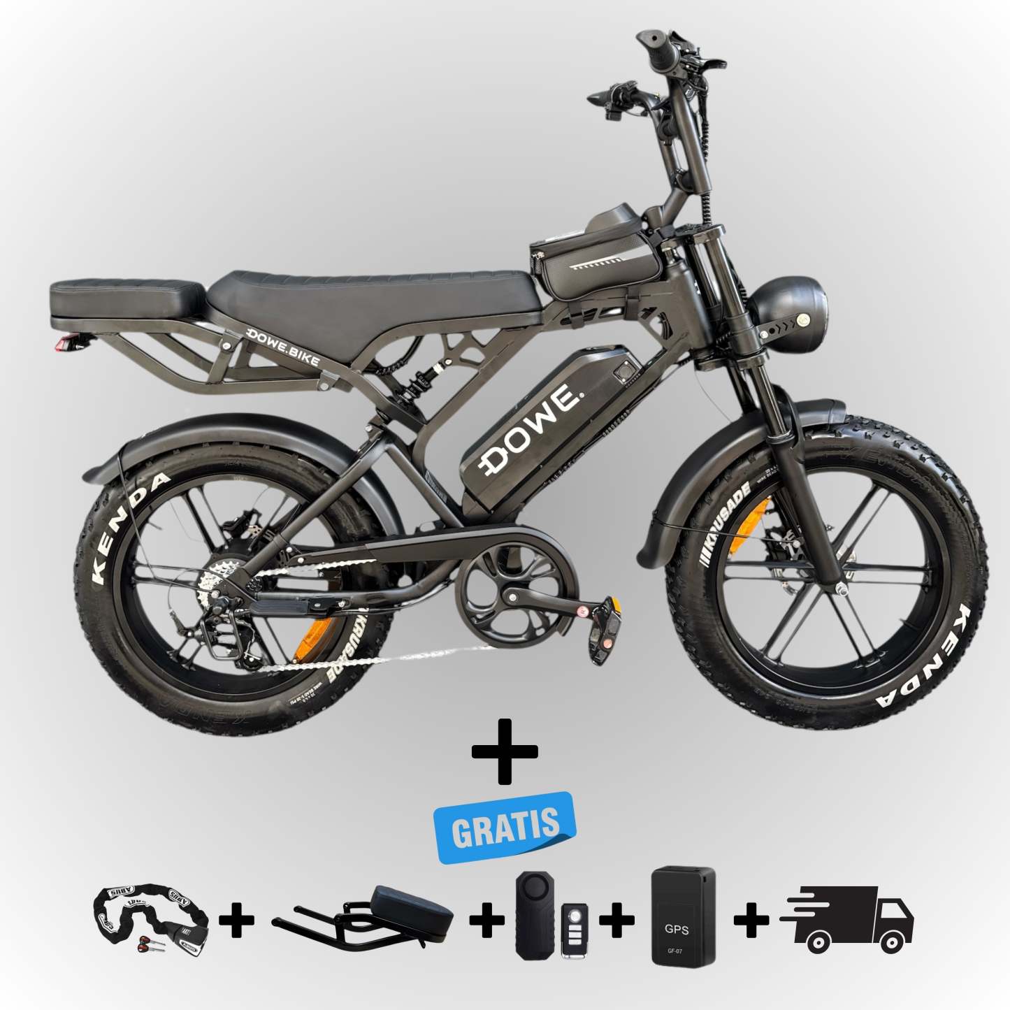 Dowe V20 Pro Fatbike - Zwart | Volledig Uitgerust + Gratis Accessoires * PRE-ORDER SEPTEMBER *